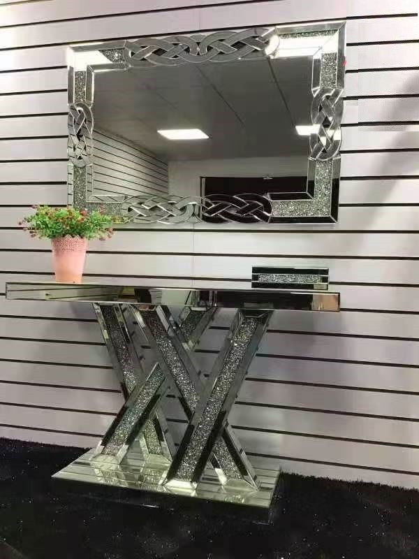 Mirrored Console Table with Matching Mirror – Luxury Crystal Design
