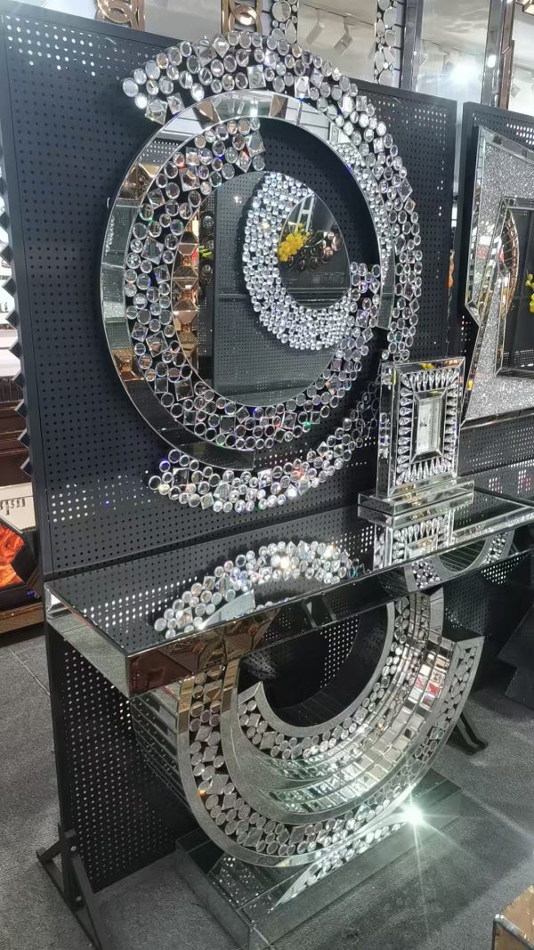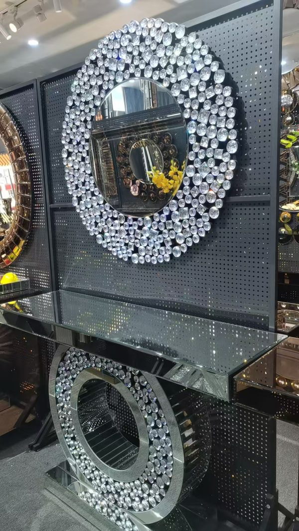 Mirrored Console Table with Matching Mirror – Luxury Crystal Design